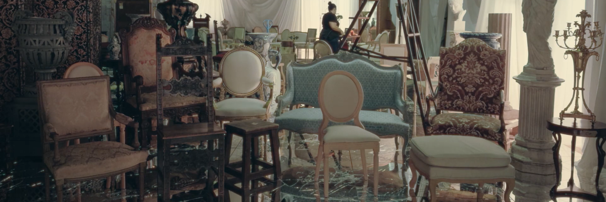 In Pavillon des Folies si riscontra una polarità in cui l’horror vacui dello spazio stracolmo convive con l’azzeramento dato dal fatto che tutte le testimonianze di un mondo non più agito, abbandonato, diventano invisibili grazie alle stoffe che le velano. Polarità che viene espressa anche dalle parole della passacaglia della vita di anonimo autore che recita, nella versione originale: “Bisogna morire”, modificata nella versione che ascoltiamo al Pavillon in “bisogna gioire”. Dunque, cancellare le tracce della vita, trasformare le variate e vivaci forme della vita quotidiana con le velature: il Pavillon mette in scena questa ambivalenza e questa duplicità del vivente che si presta a trasformarsi in inerte, che si spezza e si rompe e che in questa azione acquista una nuova linfa, quella della trasformazione, del divenire. E allora, se questa è una ipotesi plausibile, il Pavillon des Folies allestisce un ambiente in cui si rappresenta il trascorrere del tempo e il tentativo di congelarlo, privarlo delle trasformazioni e renderlo uniforme.