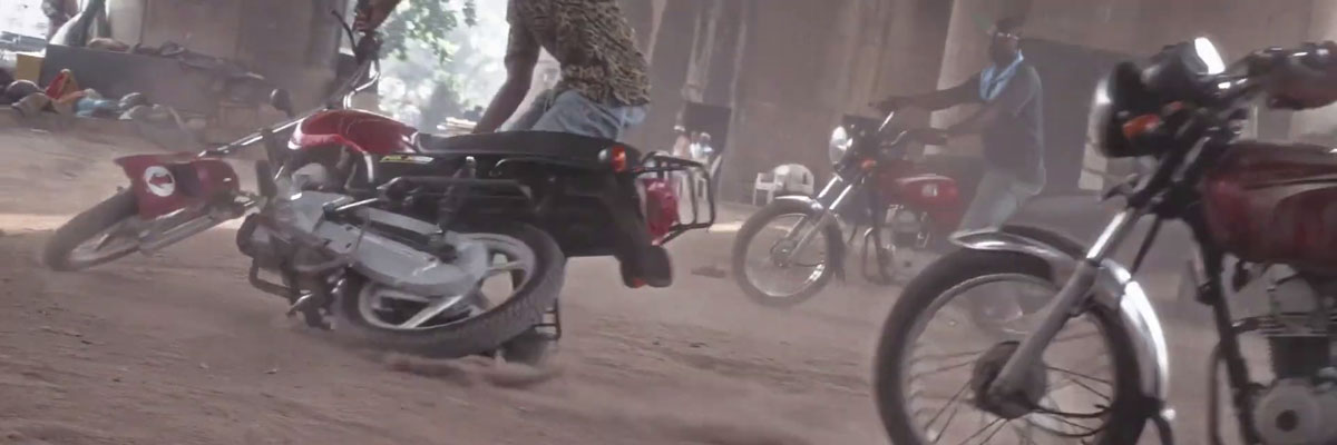 L’attribuzione del Leone d’argento, per quanto riguarda gli artisti partecipanti all’esposizione, sembra invece scorgere qualcosa di più potente, una di quelle opere che, come le tele di Yahurcani, pare eccedere la cornice inintenzionalmente (e direi paradossalmente) normativa della mostra. Si tratta del video Machine Boys, formalmente molto interessante, di Karimah Ashadu, nigeriana, che ci parla degli okada, i mototaxi di Lagos, e dei loro conduttori, oggi messi fuorilegge da un decreto che ne sancisce la pericolosità dopo aver constatato i numerosissimi incidenti. L’occhio di Ashadu entra nello stile suburbano che è proprio di questi motociclisti, fatto di un montaggio fra accessori di lusso globalizzato, moto bricolées e sgangherate, e una sorta di fragile culto della mascolinità. Le sequenze ossessive delle derapate di gruppo nei terreni sabbiosi sotto i ponti di Lagos, riprese dal punto di vista della ruota come in un film sperimentale, si alternano a campi medi e più ravvicinati che scrutano questi anti-eroi della mitologia contemporanea nigeriana.