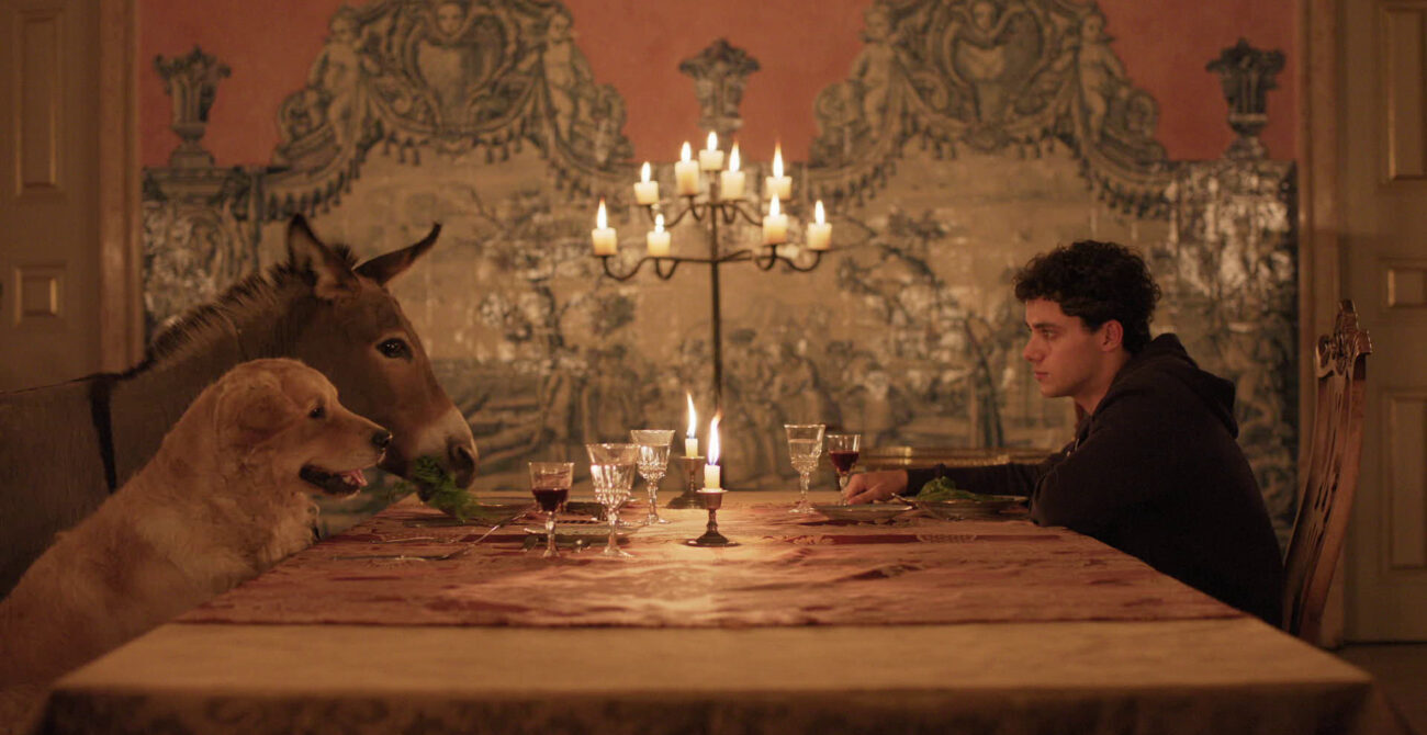 Eugène Green coltiva l’arte dell’apparizione dei suoi personaggi. Con la macchina da presa immobile, li lascia entrare nell’inquadratura, attraversarla e poi uscirne. Niente/personaggio/niente. È in questa attesa, e poi in questa apparizione, che tutto si gioca ogni volta. In questo modo, mette lo spettatore in una certa posizione, un’aspettativa. Si è in un certo senso un signor Jourdan, che accetta di farsi sorprendere, come nella lettura di Que Ma joie demeure (Giono, 1935), non si aspetta Bobi, ma Sarah, Alexandre, Jules o Pierre. Nelle primissime sequenze che seguono i titoli di testa di Atarrabi et Mikelats (2021), per esempio, quando il giovane mortale apre la porta alla dea Mari, la porta che si dischiude lentamente e il travelling ascendente dai piedi fino al volto del personaggio, sembrano dare corpo a questo passaggio cruciale dell’incontro di Bobi e Jourdan nel romanzo, non attraverso le parole del film, ma attraverso quegli strumenti di messa in scena a cui ricorre.